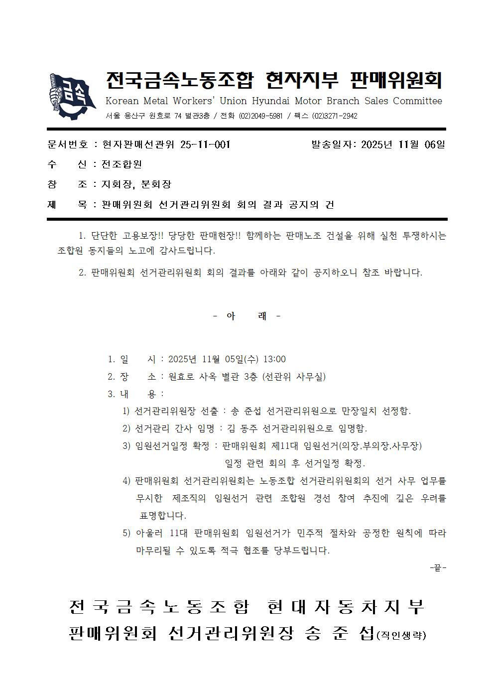 [¼±°üÀ§ °ø¹®]ÆÇ¸ÅÀ§¿øÈ¸ ¼±°Å°ü¸®À§¿øÈ¸ ȸÀÇ °á°ú °øÁöÀÇ °Ç