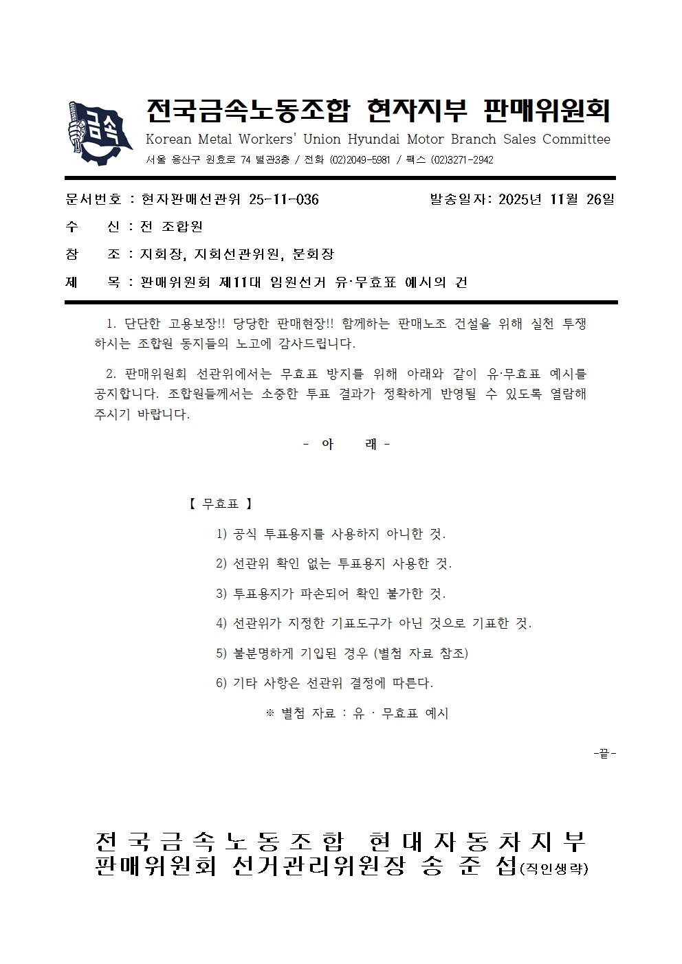 [¼±°üÀ§ °ø¹®] ÆÇ¸ÅÀ§¿øÈ¸ Á¦11´ë ÀÓ¿ø¼±°Å À¯¡¤¹«È¿Ç¥ ¿¹½ÃÀÇ °Ç