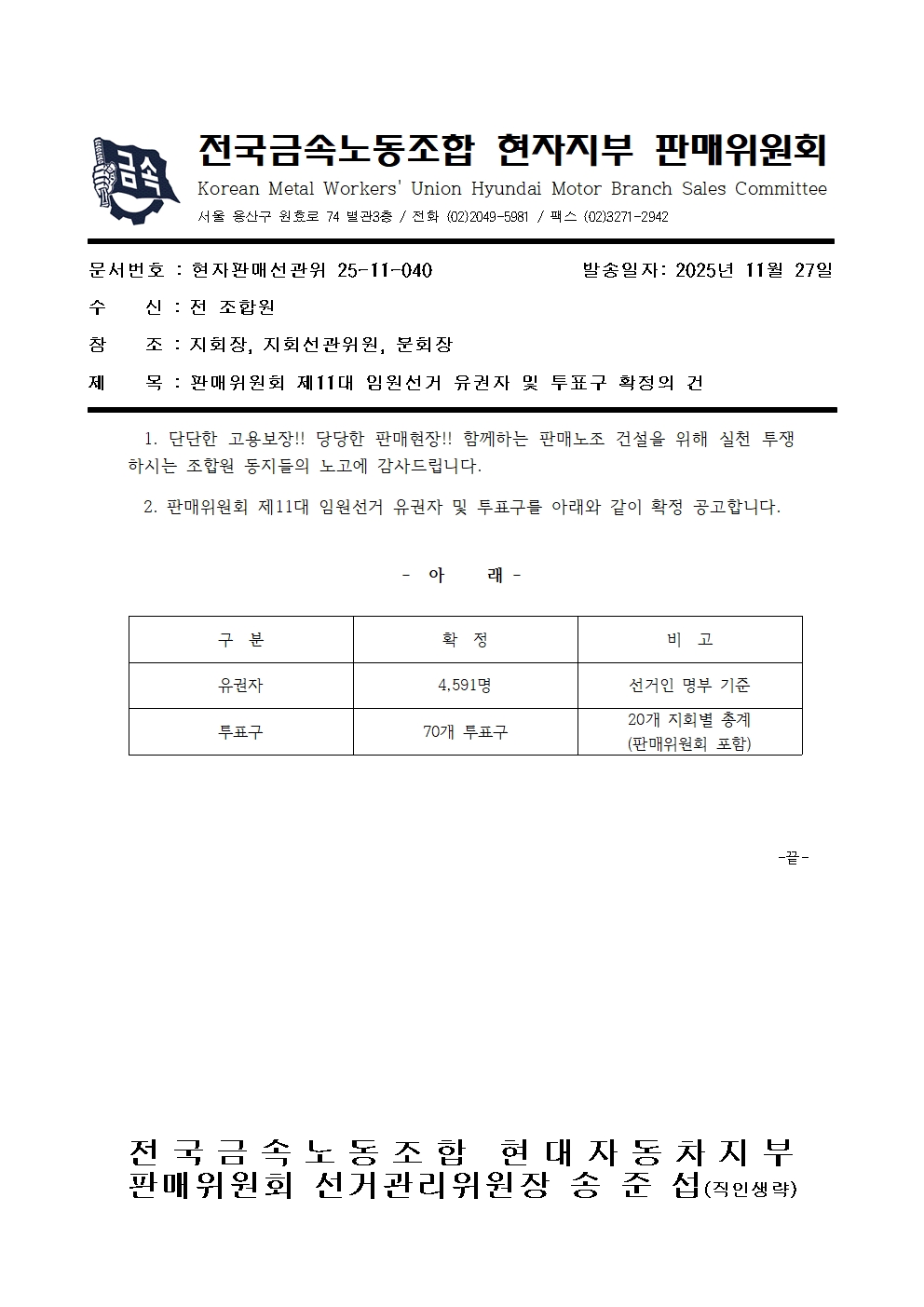 [¼±°üÀ§ °ø¹®] ÆÇ¸ÅÀ§¿øÈ¸ Á¦11´ë ÀÓ¿ø¼±°Å À¯±ÇÀÚ ¹× ÅõÇ¥±¸ È®Á¤ÀÇ °Ç